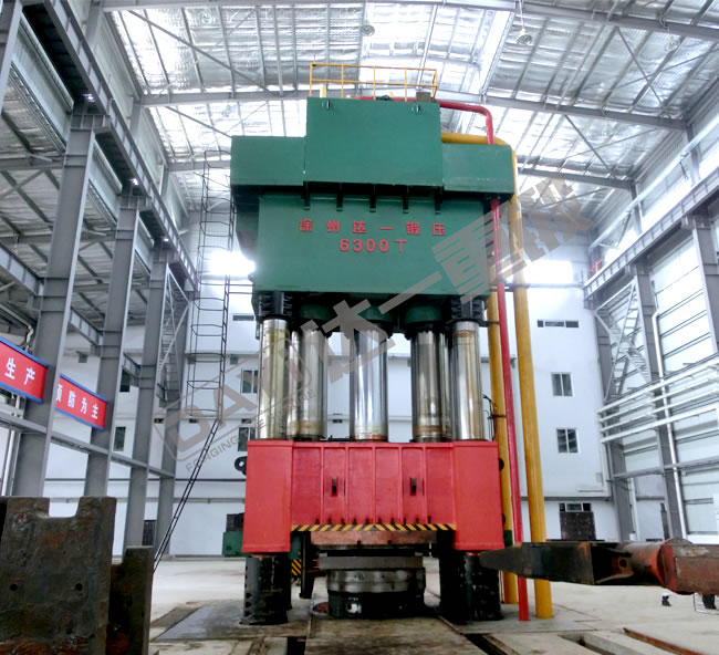 產(chǎn)品介紹:拉桿預(yù)緊組合框架結(jié)構(gòu),采用16面可調(diào)斜鐵式銅導(dǎo)軌導(dǎo)向:主要由機(jī)身、主油缸、液壓系統(tǒng)、電氣控制系統(tǒng)、安全系統(tǒng)及其他輔助設(shè)備組成;液壓系統(tǒng)由高壓油泵、調(diào)壓閥、方向閥、油箱等組成,為壓機(jī)提供可控制的液壓動(dòng)力源;電氣控制系統(tǒng)由電控柜、操縱箱、PLC、觸摸屏、報(bào)警系統(tǒng)等組成。機(jī)身前面配有一個(gè)擺臂,用于移動(dòng)預(yù)沖沖頭;配有的對(duì)中抬起裝置,置于墩粗和預(yù)沖工位,采用液壓驅(qū)動(dòng),可實(shí)現(xiàn)水平對(duì)中,同時(shí)可夾持工件上下運(yùn)動(dòng),用于工件更換工位。終沖裝置由終沖缸,副滑塊,導(dǎo)向梁及擋料架等組成,并且預(yù)留有終沖沖頭安裝面,擋料架用于終沖后副滑塊回程時(shí)將工件退下。